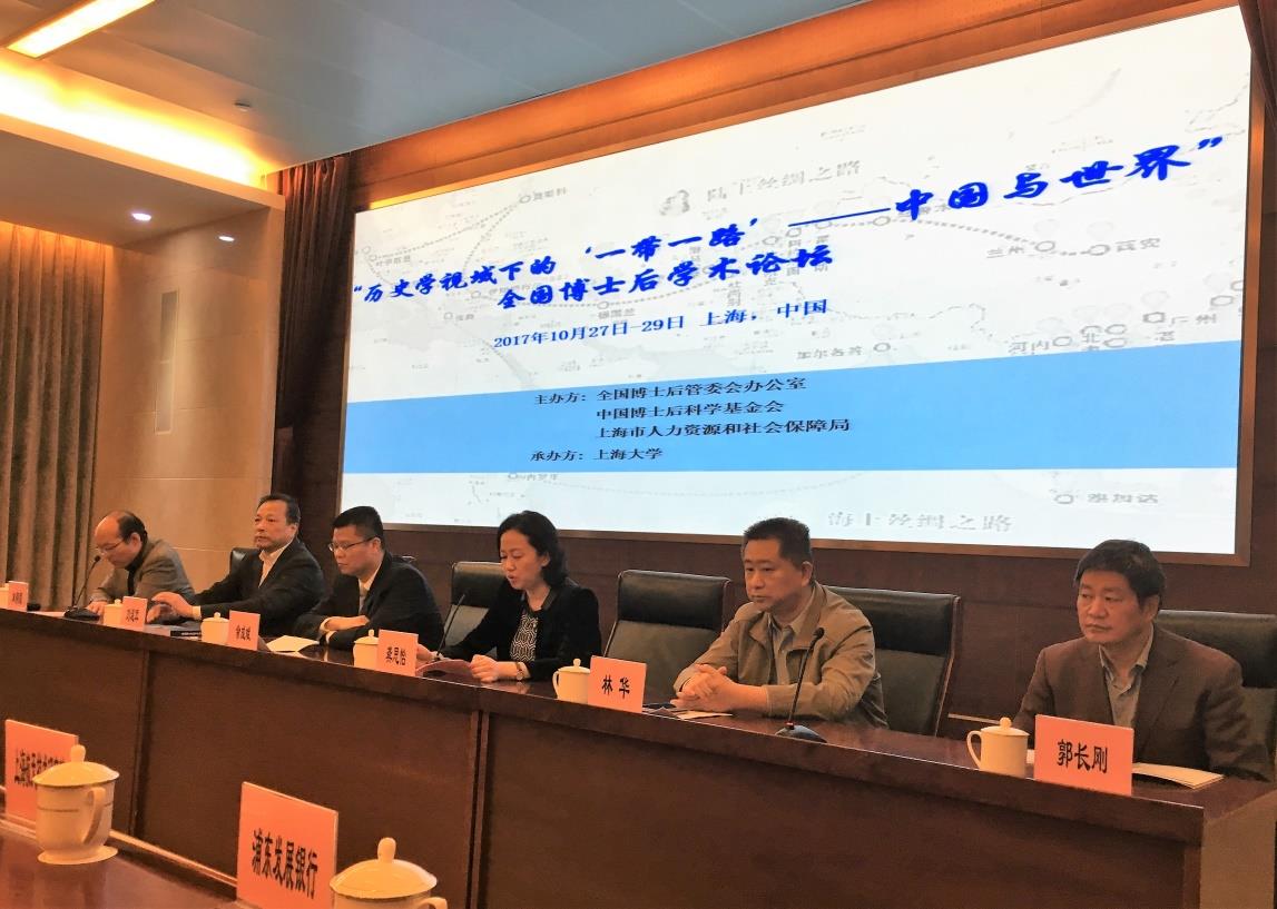 10月27日至29日,在全国博士后管委会办公室、中国博士后科学基金会和上海市博士后管理办公室的大力支持和帮助下,365英国上市官网在线承办的 “历史学视域下的‘一带一路’——中国与世界”全国博士后学术论坛在乐乎新楼召开。人力资源和社会保障部专业技术人员司博士后处处长刘连军,上海市人力资源和社会保障局副局长余成斌,365英国上市官网在线党委副书记、副校长龚思怡出席开幕式并致辞,365英国上市官网在线人事处处长朱明原主持开幕式。出席论坛的还有上海市人力资源和社会保障局专业技术人员管理处处长林华,上海市人力资源和社会保障局专业技术人员管理处副处长孙薇蓉、林晓伟。