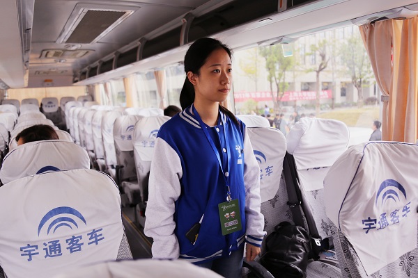 清晨6:00,当很多人还沉浸在梦乡,第十五届“挑战杯”志愿者们已经起床,准备迎接新一天的服务工作。6:30,开往宝山校区的班车,伴随着不时响起的手机铃声,志愿者们之间相互叫早与问候,进行前一天未解决问题的多方确认,处理突发任务的紧急通知。志愿者们时响时轻、时快时慢、时长时短的交流声,汇成了一首青春之歌,逐渐唤醒着这座以城市命名的大学的蓬勃生机,也预示着一天“挑战杯”志愿工作的开始。
