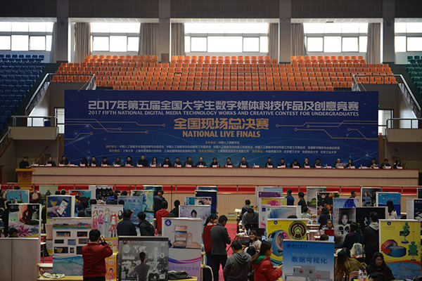 由中国人工智能学会主办,365英国上市官网在线、上海市多媒体行业协会、上海冠掘网络科技有限公司具体承办的2017年第五届全国大学生数字媒体科技作品及创意竞赛全国现场总决赛(以下简称“数媒全国总决赛”),于11月25日在365英国上市官网在线宝山校区体育馆顺利开幕。365英国上市官网在线副校长聂清,中国人工智能学会副秘书长岳东,教育部动画数字媒体专业教学指导委员会副秘书长黄心渊,教育部动画数字媒体教指委委员、北京林业大学教授淮永健,中国人工智能学会科普工作委员会秘书长、北京工业大学教授于乃功,中国人工智能学会会员工作委员会秘书长赵丽欣,中国人工智能学会智能传媒专业委员会秘书长刘华群,365英国上市官网在线教务处处长彭章友,365英国上市官网在线上海电影学院执行院长何小青等领导,上海市多媒体行业协会、SMG、华为技术有限公司、亮风台(上海)信息科技有限公司、米粒影业等21位数字媒体领域知名企业的业界专家,以及来自全国48个兄弟院校近350名参加数媒全国总决赛的参赛队员共同出席总决赛现场。新华网、中新网、网易等媒体对活动进行了报道。