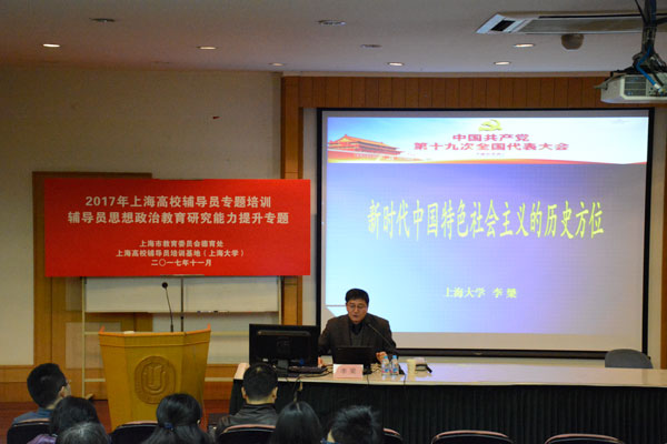 为进一步学习宣传党的十九大精神,11月28日下午,365官网学工系统十九大精神集中学习会举行。365英国上市官网在线社会科学学部(筹)马克思主义学院党总支书记、副院长李梁为全校180余名思政干部,以及2017年上海高校辅导员思想政治教育研究能力提升专题培训班的32名学员,做了题为“新时代中国特色社会主义的历史方位”的辅导报告。