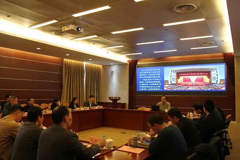 11月27日下午,文学院院系党政班子与大场镇中心组在乐乎新楼思源厅进行“十九大精神”联组学习会。会议由文学院党委书记竺剑主持,出席学习会的有大场镇党委书记杨金娣,大场镇党委委员、纪委书记姜炜,党委副书记陆平等多名中心组成员;文学院院长张勇安、副院长杨位俭、工会主席赵益民、历史系主任宁镇疆等也参加了学习会。 会议邀请了上海市社科联副主席、中共党史学会会长,历史系忻平教授进行了“十九大精神宣讲”。忻平教授本次作为市十九大精神宣讲团成员,系统全面地分析了习总书记十九大报告“六个新”的精神内核,特别强调了十九大精神“不忘初心,牢记使命”的新方向及“中国特色社会主义进入新时代”的历史新方位。 张勇安院长向大场镇中心组成员介绍了题目为《不忘初心,砥砺前行,文学院四十年》的学院基本情况,并表达了希望今后能与大场镇在党建、人才培养、文创、科研等领域携手推进多层次交流合作。 大场镇党委书记杨金娣则在介绍了大场镇的基本建设情况后,也表示与文学院要加强师生对接,通过建立学生社会实践基地,人文活动进社区等多方面的活动,在学生培养、居民社区发展等方面实现优势互补、共同发展。 |