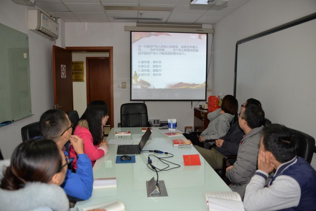 此次知识竞赛内容以党的十九大报告与《党章》为主,采取选择题与抢答的形式。此次活动旨在“以赛促学”,既是党员同志理解掌握党的十九大精神及党章党规党纪的一次“体检”,又是对当前党的十九大精神及党章党规学习成果的一次巩固提升。大家以饱满的精神状态,积极踊跃回答着每一道竞赛题,气氛活跃而紧张。有些题目也引起了大家激烈的讨论与辩论,例如:坚持反腐败无禁区、全覆盖、零容忍,坚定不移“打虎”、“拍蝇”、“猎狐”,____的目标初步实现,____的笼子越扎越牢,____的堤坝正在构筑,反腐败斗争压倒性态势已经形成并巩固发展。正确答案是:不敢腐、不能腐、不想腐。经过讨论,大家一致认为该题完全符合数学的逻辑。大家竞相答题、踊跃辩答,将现场气氛一次次推向高潮。