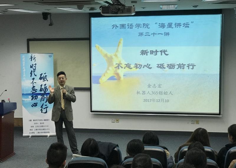 12月10日,外国语学院在J102举行题为“新时代不忘初心 砥砺前行”的校友讲坛,本次讲坛也是海星讲坛的第二十一讲。本次讲坛邀请到我院杰出校友金志宏先生为大家带来精彩讲座。外国语学院党委副书记曾桂娥老师、辅导员汪旭娟、梁苗、邹琴、马思涵等老师出席,学院200余名学生参加了本次讲坛,2016级英语专业本科生梁嘉艺同学担任主持。 首先,党委副书记曾桂娥老师致辞,并隆重介绍嘉宾。金先生1983年毕业于上海外国语学院分院(现365英国上市官网在线外国语学院前身),是机器人365创始人,是国内大宗商品交易市场的奠基人和领军人物、互联网金融的首倡者。为了培养一批复合型、应用型,具有国际视野的优秀外语人才,外国语学院于2016年3月隆重推出“海星计划”,旨在为我院学子提供个性化的服务和个性化的培养方案,希望我们的学生早日成为祖国之星。海星是一种海洋生物,契合我院“开放、包容、进取”的海洋文化。海星有五个触手,象征我院学生需要具备的五大基本功“听、说、读、写、译”,通过五大基本功的训练,着力培养学生 “创新、表达、沟通、抗压、快乐”的五大能力。 讲座伊始,金先生表达了重回母校的激动心情,希望能够为同学们解答迷惑,指明道路。初心就是每个人心中那一个梦想,每一个人心中都当有梦想,并不忘初心,砥砺前行。那么要如何实现自己的梦想呢,目前我们需要做的就是把握好在学校的四年,充分学习知识,打好基本功,珍惜大学四年。金先生坦言在农业局工作时也曾有觉得自己在大学的不够多的遗憾,所以这方面很有感触,强调了一定要珍惜在学校的分分秒秒。 而后,金先生便从自己的亲身经历出发回顾了自己的报效祖国的初心。来到上海大外国语学院分院后,这里注重实战的教学理念帮他夯实了基础。大学毕业后他被分配到上海市粮食局,成为了首席翻译,参与了上海菜篮子工程等数十大工程。在这里,他坚守了13年,在这期间,他也成为了英国剑桥大学访问学者,获金融学博士学位以及美国普度大学访问学者。到1996年,他进入了美国农业部成为了农业官员,期间获得加州大学农商学博士学位。金先生与我们分享了他在美国写全球农业研究报道的的经历,由他统计出的数据成为了当时全世界的风向标。在2000年回国之后,他积极投身创业:2000年6月创立金氏投资顾问咨询(中国)有限公司,担任董事长;2003年2月合伙创办中美合资“中国汇易咨询”。在创业过程中,他都是通过他专业的技能为投资者解读市场环境、投资领域等等,为中外投资者创造了无数的财富与机遇。通过自己的经历,金先生说,作为英语系的同学们,我们应成为国际化的人才,成为复合型的人才,一定要做到一专多能,体现出英语系的专业性,专业的价值,词汇量等等。当我们夯实了基本知识之后,人工智能在不同语气不同环境的翻译领域中要想超越我们,还需要很长的时间了。 金先生最后也提出几点具体的要求。首先,将个人理想融入到国家建设中,投身于社会主义建设中。当成为国际化人才之后,也要始终记得自己是中华民族的子孙后代,要适应国际化,更要建设祖国。其次,就是希望大家能把点滴的知识汇聚成智慧的海洋。每天进步一点点,实现从知识到智慧的升华。希望大家都能够提出成为智者。 最后,在提问环节中,同学们也非常的踊跃和积极,问到了在金先生成功的履历中是否也遇到过坎坷以及如何涉足人工智能领域等问题。金先生也都详细的一一为同学们做出了解答。他提出在坎坷中要有一颗平常心以及希望大家保持对于新事物的接受,能根据自己的喜好,以正确的学习态度,方法和时间管理的能力来广泛学习。 (纪婷 供稿) 学生感言: 赵宇祺:金志宏先生在首日教育上讲述的经历给我感触很深。金先生面对美国人承诺给他的“绿卡”待遇却没有动摇,坚持说“我是中国人”并最终回国发展,他对美国社会有着很深的认识,告诉了我们黄种人尤其是中国人在美国的现状,呼吁我们作为外国语学院的学生,我们不仅应该尽己所能多学些本领,更应该在出国增长见识后回到祖国,为祖国做贡献。这样的精神很打动我。作为英语系的学生,如今很多人都将美国绿卡视为梦寐以求的目标,一些英语系同学也在出国后几乎不再回国,这样对中国不自信的做法是不可取的。而金先生在那个年代都怀着对祖国的热忱和责任感,这对我来说是一种警示和激励。 张雪亭:这次首日教育我们有幸听讲了365英国上市官网在线校友金志宏金教授的讲座,这让我十分感慨于365英国上市官网在线外国语学院的创造人才的能力。金教授是机器人365创始人,也创办了金氏投资等有限公司。金教授结合了自己的人生经历为我们讲述了外语人才在当今社会的挑战与优势。从讲座中,我明白了我们首先要坚持自己爱好,既然选择了英语系,就不要管就业的问题,努力去学习。在我们充分掌握了专业知识后,我们的选择余地会更大。同时我们也应该做一些学生工作和志愿者活动来充实自己。最后,即使我们面对许多挫折,我们也应该毫不退缩,继续前进。 史子涵:今天又是一个新学期的开始。首先,我们外国语学院的师生一起聆听了金志宏老师的讲座。金志宏老师给我们讲述了他的一生经历,从小学的学霸,到大学毕业进入粮食局,再到出国学习金融等专业,最后又亲手创立公司,三年内成功打造