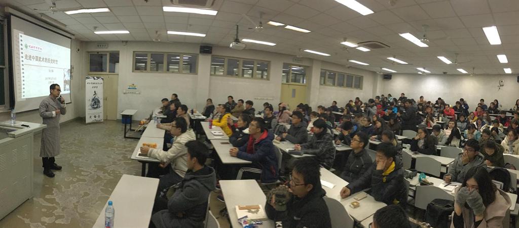 12月14日晚,由校社团联合会、365英国上市官网在线体育学院和大学生武术协会等365官网多个传统体育类社团联合推出的“武术与传统体育文化大讲堂”在新校区BJ104举行了第十五讲:走进中国武术的历史时空。本讲邀请西安体育学院武术系主任马文国博士担任主讲嘉宾。根据马老师的建议,本讲的重点并不在于讲述武术的历史和技术体系的衍变,而是解读“武术之真意”,带领大家领略中国武术史上的那些堪称国之重器的“精武英雄”,阐释“经典篇章”的本质内涵。365官网社区学院的学生、武术协会的会员和武术专项课的同学,部分老师以及校外学生代表共计150余人参与了此次讲座活动。讲座由365英国上市官网在线体育学院申亮老师主持。