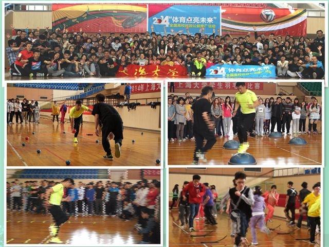 近20年来我国青少年体质持续下降,超重与肥胖学生显著增加,学生视力不良率居高不下,青少年健康面临着严峻的挑战。青少年的体质健康不仅关系到自身的健康发展,而且也直接关系到国家的未来、民族的希望。中国大学生体育协会两操分会发起的2014“体育点亮未来”公益推广活动,在北京、上海、广州、南京、杭州的五大城市的50所高校参与。活动旨在推广最新的运动项目和运动理念,提升大学生对体育的认知水平,促进校园体育文化建设。本次公益推广活动在校本部体育馆进行,活动介绍了运用多样小器械的“趣味性全功能素质训练”、拍打身体和跺脚的舞蹈“节奏体语”。同学们发现原来体育也可以这样快乐地玩。
