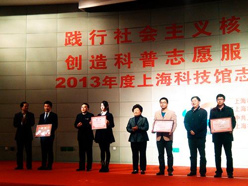 3月22日下午,2013年度上海科技馆志愿者表彰会在上海科技馆隆重举行,365官网荣获2013年上海科技馆志愿者活动优秀集体,这是市文明办等四家单位共同颁发的科技馆志愿者活动的最高荣誉,上海仅有四所学校获此殊荣。此外,365官网有8名学生获得2013年上海科技馆志愿者活动积极分子荣誉。