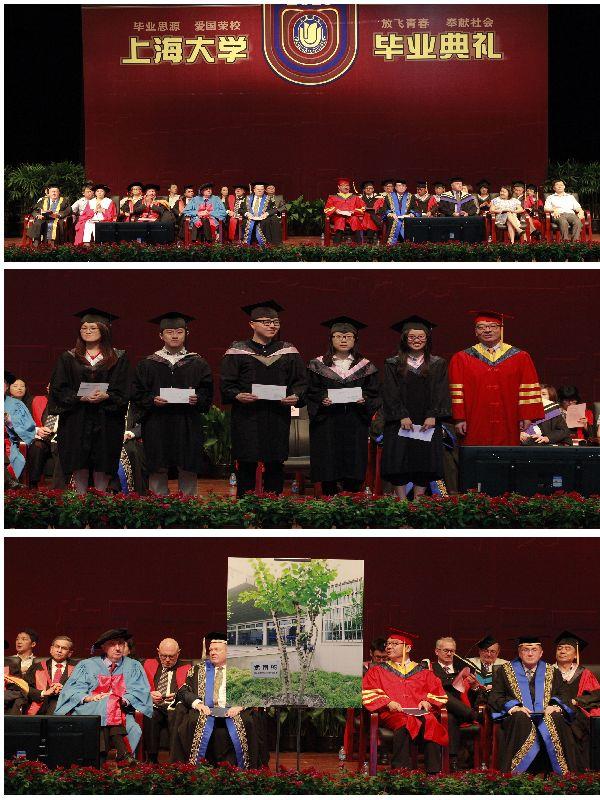 正式典礼开始前,在大礼堂前全体毕业生与校领导和学院教师合影留念,留下难忘的瞬间。在悠扬乐曲声中,毕业典礼正式开始。典礼由悉尼工商学院党委副书记滕云主持。全体起立演奏国歌后,悉尼工商学院院长龚思怡致辞。她对合作办学双方校领导、中外嘉宾、毕业生及家长的到来表示热烈欢迎。她向大家简要介绍了当天毕业的学院本科生、研究生及自主招生国外学位、国外文凭学生的毕业、获奖、留学、读研及就业的总体情况。她说,今天毕业的同学,经历了2010年上海世博会的洗礼,无论是“小白菜”还是“蓝精灵”,都在服务岗位中展现了悉商中西合璧的文化风采;在F1赛车场、上海科技馆、阳光之家,云南、贵州、江西和安徽等多地希望小学都留下了同学们挥洒汗水,奉献爱心的身影;同学们经历了学院首批奖学金评审改革的试点,见证了学院首批暑期学校的成立和运作,在“人民电器杯”全国大学生政策性辩论赛、“新航星”演讲比赛、365英国上市官网在线“十佳歌手”大赛、365英国上市官网在线“金话筒”主持人大赛等活动中脱颖而出,屡创佳绩。同学们成功举办了悉尼工商学院首届高校社团论坛,上大赛扶荣获华东赛优秀社团。在这届毕业生中间,飞出在校内颇具影响力的“上大信使”,以微博为载体,积极宣传校园文化,成为SILC的一张文化名片和365英国上市官网在线的一道靓丽的文化风景线。