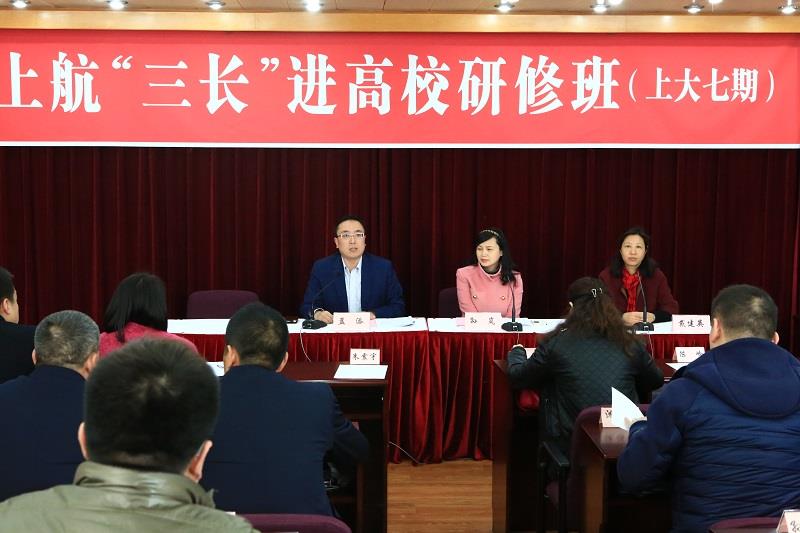 2017年3月15日上午9点,上海航空公司“三长”进高校研修班第七期在365英国上市官网在线上海经济管理中心如期举行,上海经济管理中心培训部主任戴建英主持开班仪式,来自上航和东航的“三长”(机长、乘务长、班组长),共53名学员参加为期2天的培训。